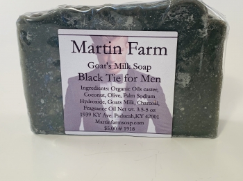 Martin Farm Black Tie Goat’s Milk Soap is a Sophisticated note of black peppercorn and leather which are carefully crafted with warm woods, patchouli, musk and citrus. This is a top seller for Men! Very Manly Fragrance.