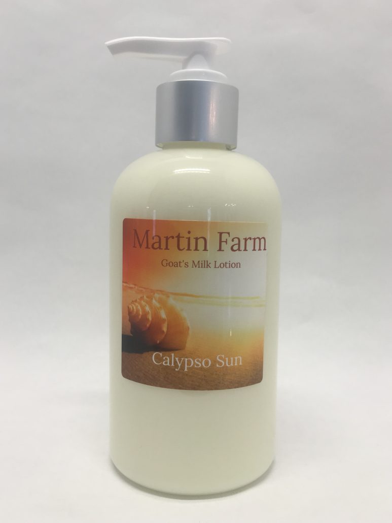 Martin Farm Calypso Sun Goat’s Milk Lotion is a luscious blend of juicy mandarin, white peach and tropical mango.