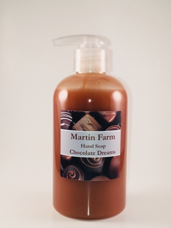 Martin Farm Goat’s Milk Chocolate Dream Hand Soap is for chocolate lovers of all ages. Martin Farm Chocolate Dream has a decadent blend of crafted dark chocolate truffles and rich fudge brownie chunks, masterfully blended with rich buttercream and classic vanilla gelato.