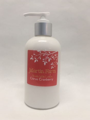 Martin Farm Citrus Cranberry Goat’s Milk Lotion is Freshly squeezed oranges kissed with tart cranberry. Martin Farm Citrus Cranberry is a clean, crisp blend that is sure to awaken the senses.
