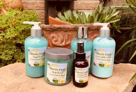 Contains: 8oz Goat’s Milk Lotion, 8oz Hand Soap, 8 oz Body Scrub, 8oz Body Wash, 2oz Hand Sanitizer