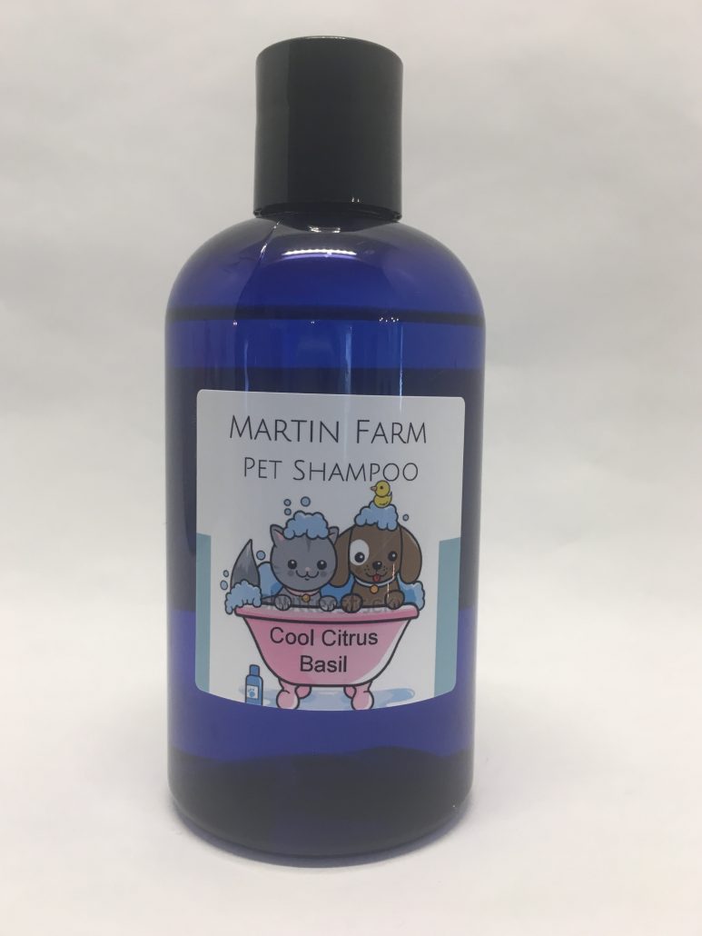Martin Farm Cool Citrus Basil Pet Shampoo is a blend of fresh, just picked garden greens and basil accented with sparkling lime.