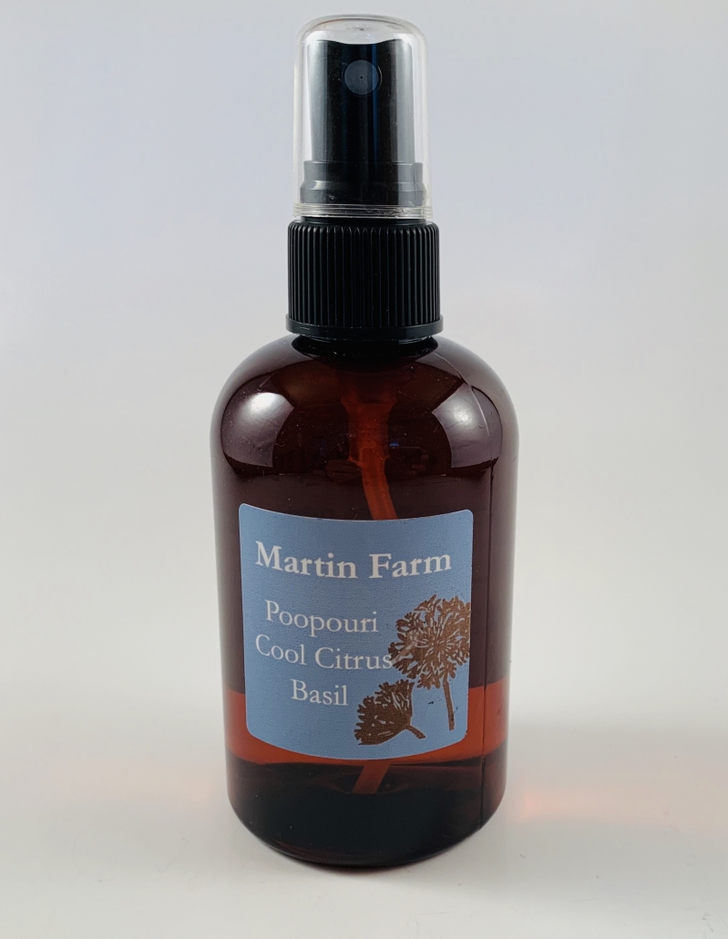 Martin Farm Cool Citrus Basil   Poopourri is an all natural way to cover unwanted smells. Cool Citrus Basil is a blend of fresh, just picked garden greens and basil accented with sparkling lime.