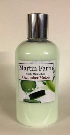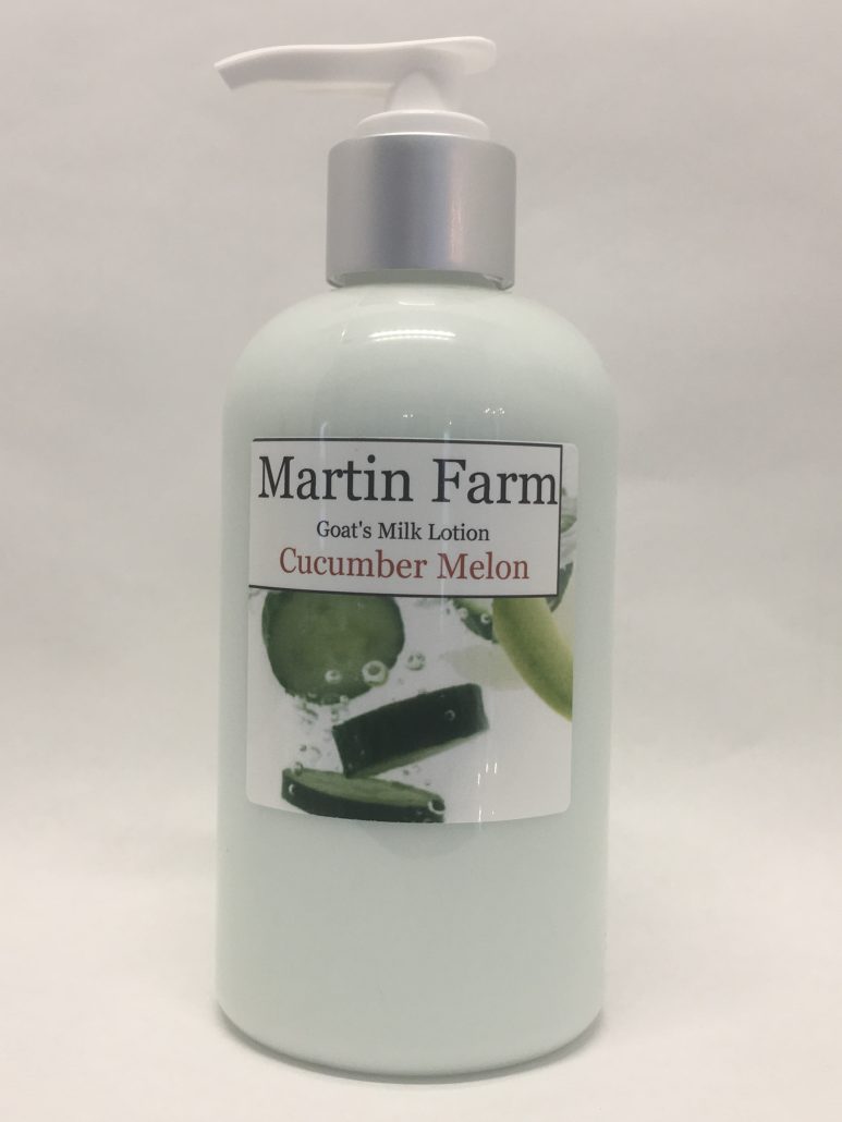 Martin Farm Cucumber Melon Goat’s Milk Lotion is a fresh, watery summer honeydew and sweet watermelon combined with crisp, cool cucumber.