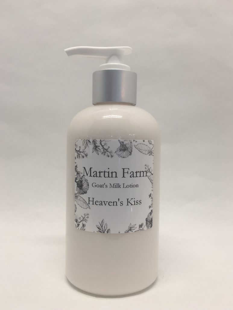 Martin Farm Heaven’s Kiss Goat’s Milk Lotion is a Sensual Mirabella plum, black raspberry amber, lush peony, vanilla bean, musk and fresh spun cotton candy.
