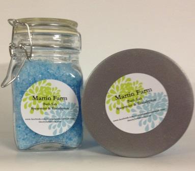Martin Farm Bath Salts come in four sizes: 16oz ($12) 12oz ($9) 8oz ($5) or a holiday glass jar ($10)