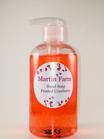 Martin Farm Frosted Cranberry Hand Soap is  made from Deeply delicious cranberries that  are flavorfully kissed with winter frost and rich, velvet plum.