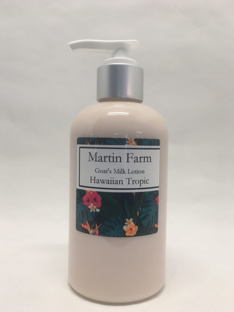 Martin Farm Hawaiian Tropic Goat’s Milk lotion will remind you of hot summer days by the water. It’s fragrance is intoxicating.