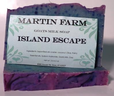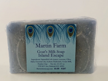 Martin Farm Island Escape Goat’s Milk Soap is is blend of passion fruit, blooming jasmine, sugared citrus and exotic floral’s. Leave your worries behind as you escape with Martin Farm Island Escape.