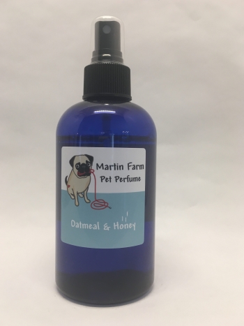 Martin Farm Oatmeal Honey Pet Perfume. Our pet perfume is a wonderful way to pamper your pet while keeping them smelling fresh and clean between baths. Martin Farm Currently makes Pet Perfume in several fragrances but will customize any fragrance. Simple Email martinfarmsoap@hotmail.com to customize your Pet Perfume.