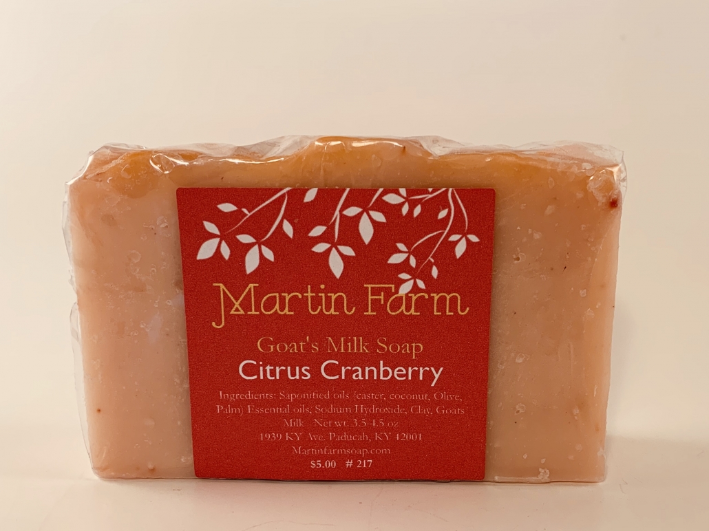 Martin Farm Citrus Cranberry Goat’s Milk Soap is Freshly  squeezed oranges kissed with tart cranberry. A clean, crisp blend that is sure to awaken the senses.