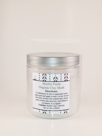 Martin Farm Organic Kaolin Clay mask contains Organic Charcoal and Organic Kaolin.  Activated charcoal draws bacteria, poisons, chemicals, dirt and other micro-particles to the surface of skin, helping you to achieve a flawless complexion and fight acne. Kaolin Clay is used to treat skin conditions, inflammation, soreness, acne, cuts, cold sores, insect bites, and it increases blood circulation to that area of the skin. This make is great for tightening and toning skin. This clay mask contains high content of silica that helps in removing the dead skin and makes it to regenerate. This also purifies and detoxes the skin and makes it moist. In addition, it has unique minerals and phyto-nutrients present, which helps in eliminating toxin and oil from the skin. Martin Farm offers this mask in three sizes: 40z Container for $6, 8oz container for $10 or 12 oz container for $14