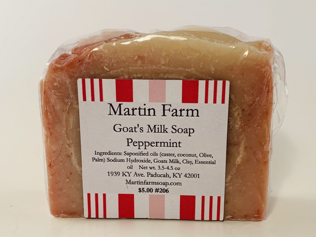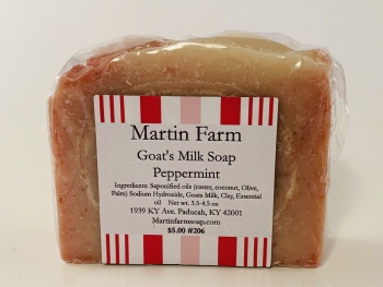 Martin Farm Peppermint Goat’s Milk Soap is a cool minty fresh aroma of peppermint, reminiscent of candy canes.  Martin Farm Peppermint Soap contains essential oil that gives a cooling sensation and has a calming effect on the body, which can relieve sore muscles when used topically.
