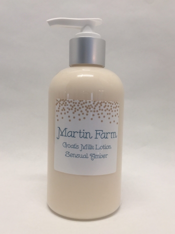 Martin Farm Sensual Amber Goat’s Milk Lotion is a sensual  blend of lotus petals, amber, exotic musk and creamy vanilla with hints of lemon and mandarin orange.