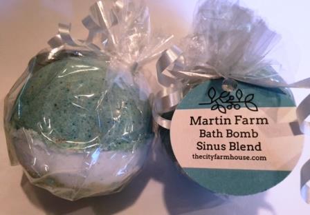 Martin Farm Sinus Blend Bath Bomb is a blend of effervescent camphor, eucalyptus, menthol and rosemary. Great for those days when you need a pick me up or allergy season.