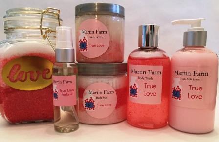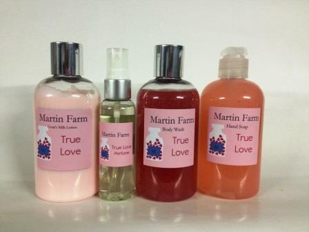 Martin Farm True Love Gift Set contains Goat’s Milk Lotion, Body Wash, Hand Soap, and a perfume. Value $ $37