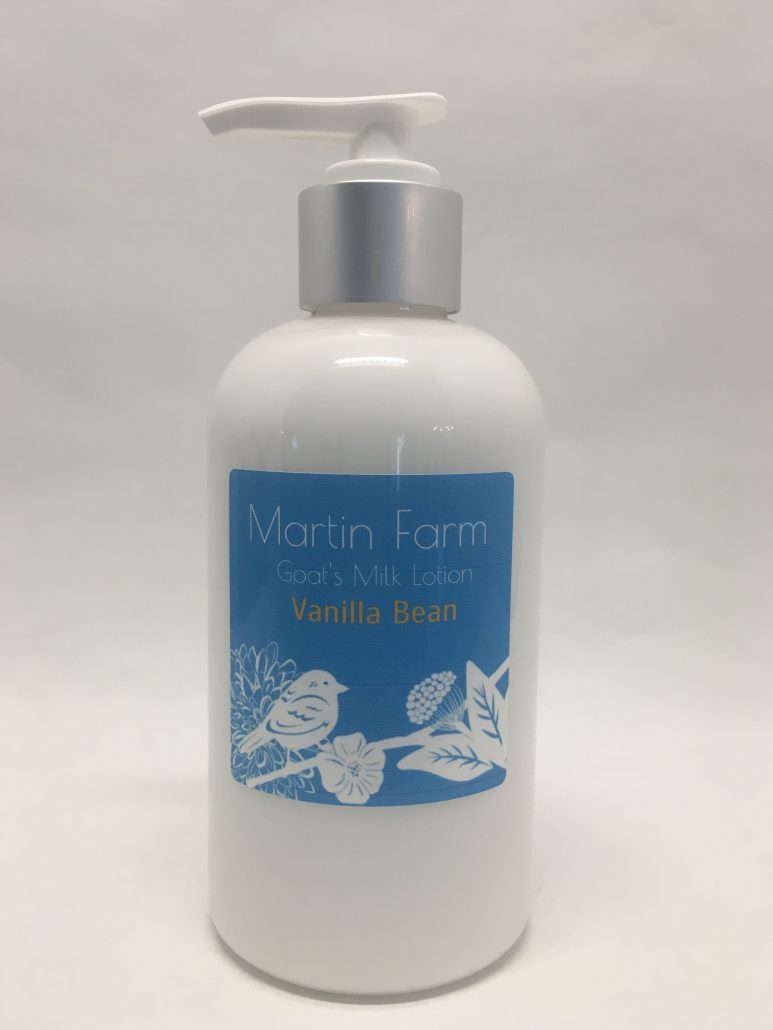 Martin Farm Vanilla Bean Goat’s Milk Lotion is a warm blend of fresh vanilla bean, rich caramel and soothing cream.