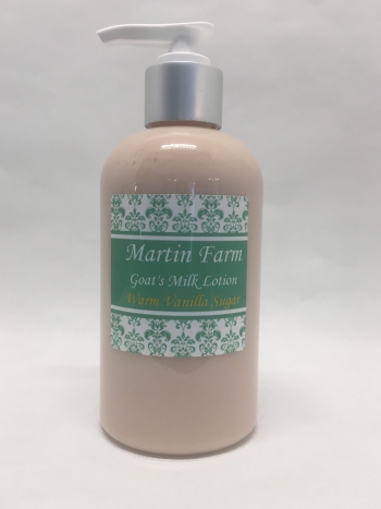 Martin Farm Warm Vanilla Sugar Goat’s Milk Lotion is a Rich and decadent notes of brown sugar and vanilla nestled with a hint of musk.