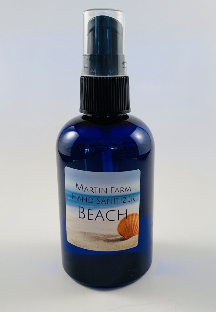 Martin Farm Beach Hand Sanitizer is a gorgeous day at the beach complete with warm sand, sea spray, salt, jasmine and mandarin.