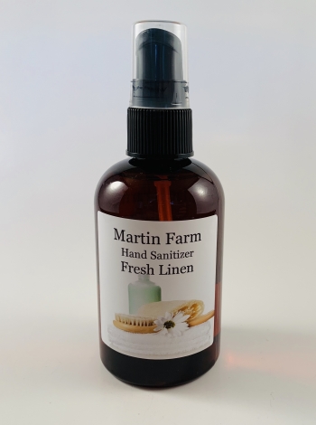 Martin Farm Fresh Linen Hand Sanitizer  is a Crisp and clean, reminiscent of linen sheets drying in the warm summer sun.