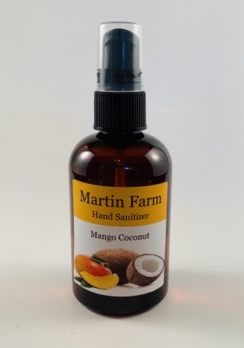 Martin Farm Mango Coconut Hand Sanitizer  has a magnificent island aroma that burst with scents of fresh mango and coconut shavings. Mango Coconut also has sweet undertones of sugared musk blended to complete this tropical paradise.