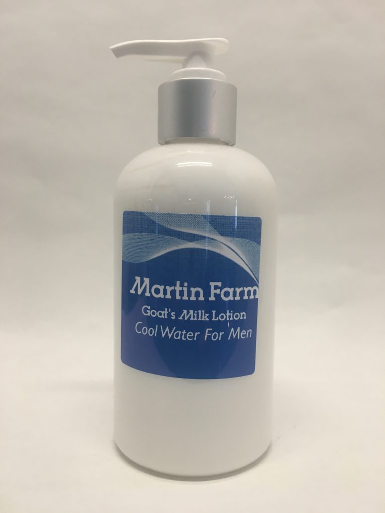 Martin Farm Cool Water for Men Goat’s Milk Lotion is a sophisticated blend of marine and green notes with cooling mint contrasted with rich cedarwood and musk.