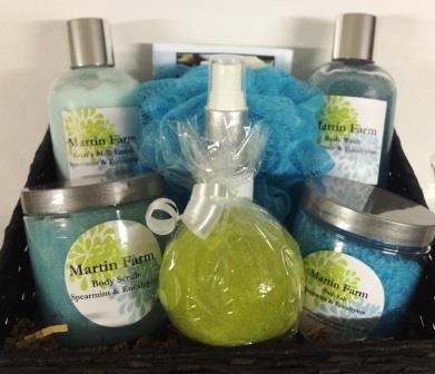 Martin Farm Feel Better Basket is great for those feeling under the weather. Martin Farm Feel Better Basket includes Spearmint and Eucalyptus Lotion, Body Wash, Large Bath Bomb, Bath Soaking Salt, Body Scrub, Perfume, and a Luffa all for $50.
