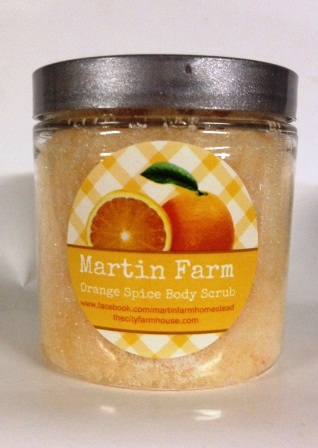 Martin Farm Orange Spice Body Scrub has the uplifting aroma of sweet and sunny freshly peeled oranges. Martin Farm Body Scrubs come in four sizes 16oz ($14), 12oz ($10), 8oz ($5) 2oz Sample Size ($2)