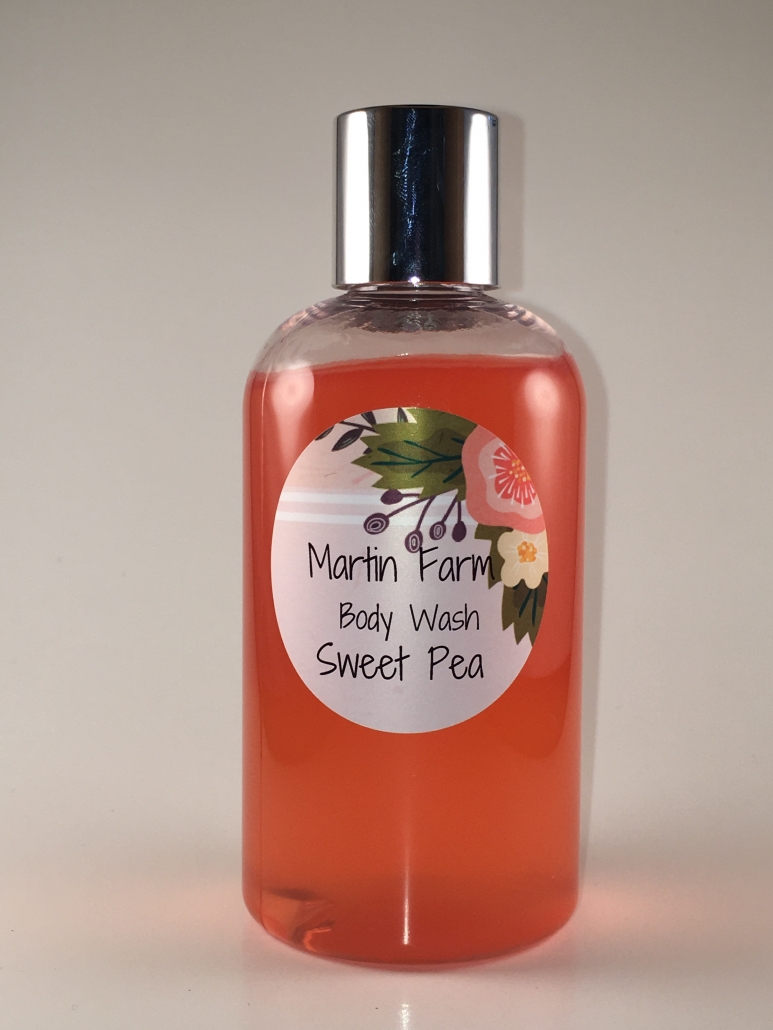 Martin Farm Sweet Pea Body Wash is sweet pea petals and watery pear entwine with sheer freesia, fresh berry, and soft, delicate musk.