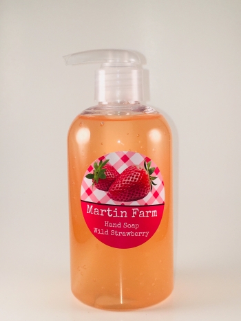 Martin Farm Strawberry Hand Soap has the sweet scent of red strawberry and raw cane sugar with notes of green apple and green vine.