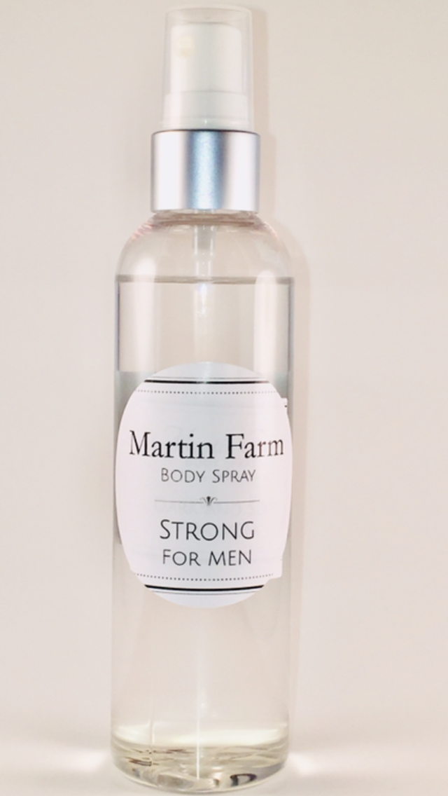 Martin Farm Strong for Men Body Spray is a Reminiscent of Dior’s Farenheit for Men, this upscale and unique woody amber scent is not your average men’s fragrance! Opens with bright bergamot, juniper berry and lemon, is splashed with middle-notes of spicy, fruity overtones and frankincense, then dries down to a complex layer of incense, benzoin, wood, mosses and musk.