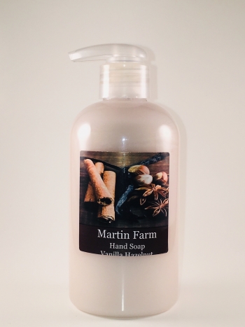 Martin Farm Vanilla Hazelnut Hand Soap is a Sweet hazelnut with the richness of buttery vanilla cream fragrance. This is perfect for the fall and holidays.